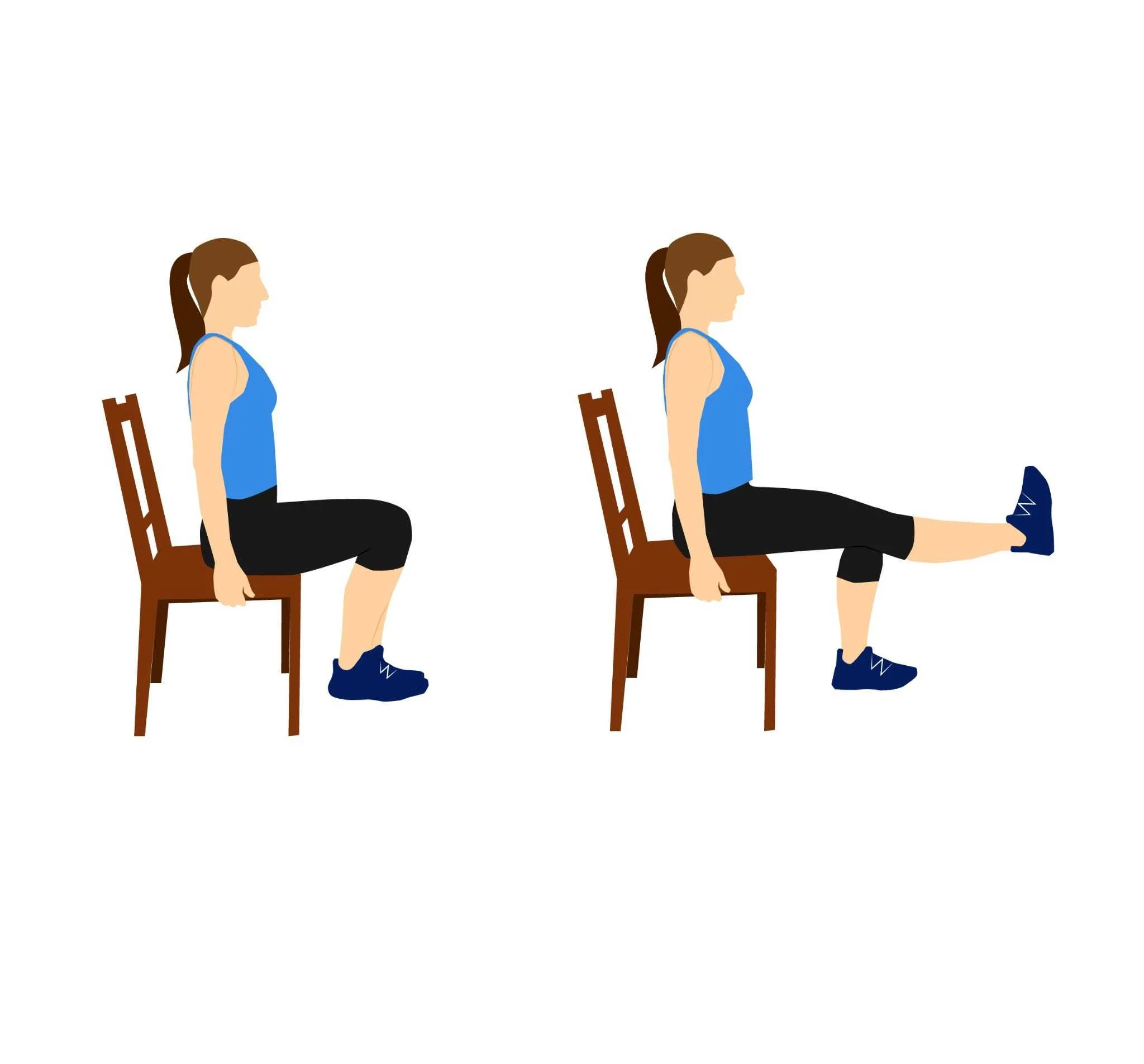 Sitting on a chair, straighten your leg and squeeze your thigh muscle